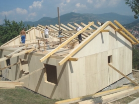 finanzierte den Bau eines kleinen Fertighauses, für das die Familie