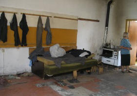 bewohnten Schulraum vor der Renovierung; das Bild unten ein zum